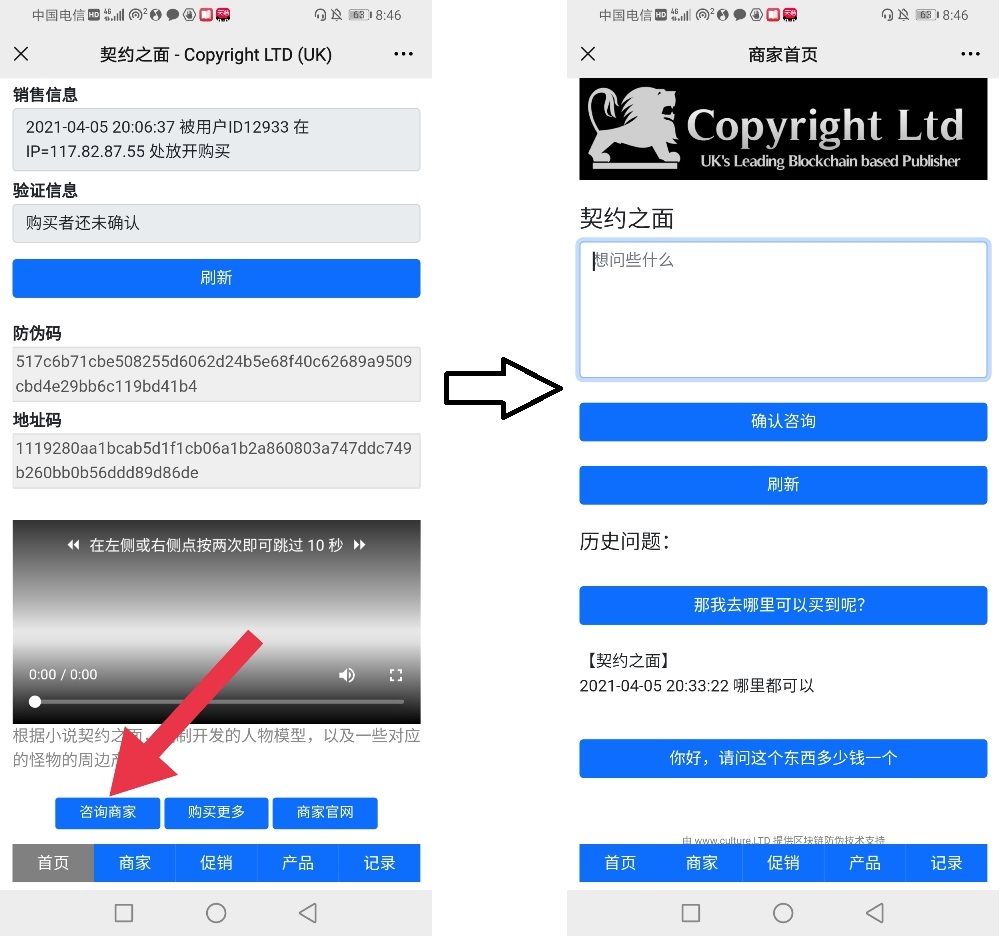用户在扫码后,可以直接向商家提问: