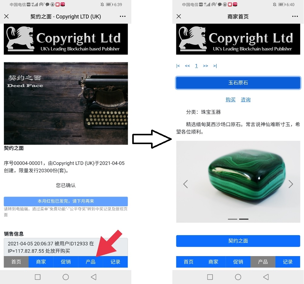 如图所示,客户扫码后点击底部菜单中的“产品”按键,会显示所有该商家在本平台注册的产品,直接为自己的其他产品拓展商机。同样,此处仅会显示本商家的产品,不像其他电商平台那样列出相似的其他商家产品,确保您的流量只属于您自己,拒绝恶性的价格竞争。